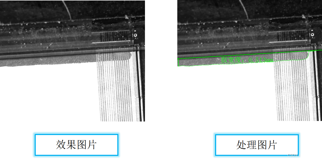 根據目前樣品實驗效果及處理結果來看,是可以對膠的輪廓提取及處理的,但兩邊的線路會有少許干擾,特別是在膠量少的情況下影響更大。如果有其他顏色電路軟板背景,或者膠量更加少(膠薄)需要相應的產品進行測試才能確認效果是否能夠檢測,同時需要保證軟板平整。
