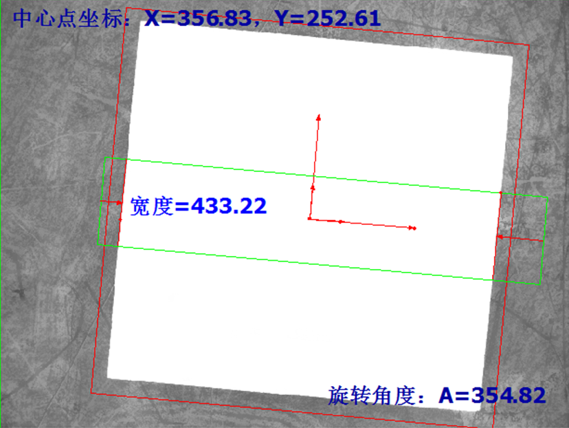 對所有樣品進行分析,可以在不同的樣品尺寸與位置下測量出晶片的大小與質心點位置、旋轉角度,以及MARK點的位置等。