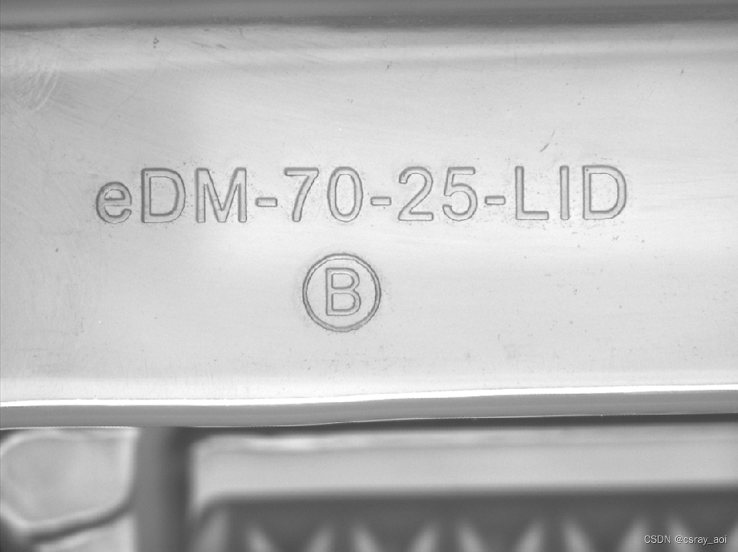 因硬盤容器上蓋的表面是比較平整的面,使用CSR-90-ICOb光源,從上往下直射照射,字符的邊緣將被表現(xiàn)為黑色,而其它地方則表現(xiàn)為白色,利用字符邊緣,有利于字符的識別。