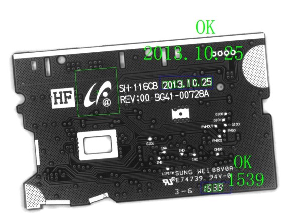 類似硬盤容器檢測案例,系統可能采用多相機分區域策略。例如,將PCB板劃分為多個檢測區域,每個工位的相機負責特定區域的字符識別,提高檢測效率并降低硬件成本(如使用多套百萬像素級相機,而非單一高像素相機)。