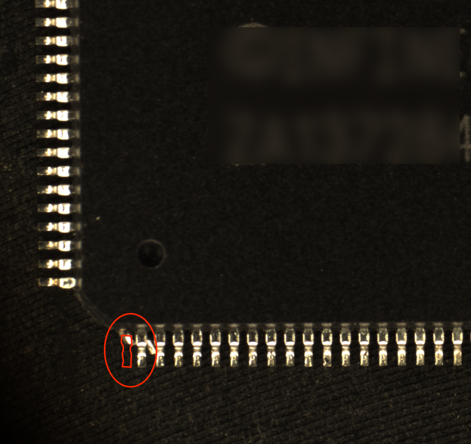 可以檢測出金手指斷裂以及IC引腳位置度,具體還要以實際樣品缺陷為準,拍攝時產品必須要保持水平。